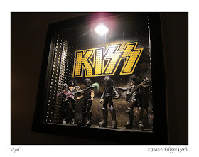 The decor is pretty interesting: disco balls on the ceiling, mosaic everywhere, even on the table (ours was a displaying a big Atari logo) and a big bust of Elvis. On the walls, you could see action figures from bands like Kiss, or actors, shows...